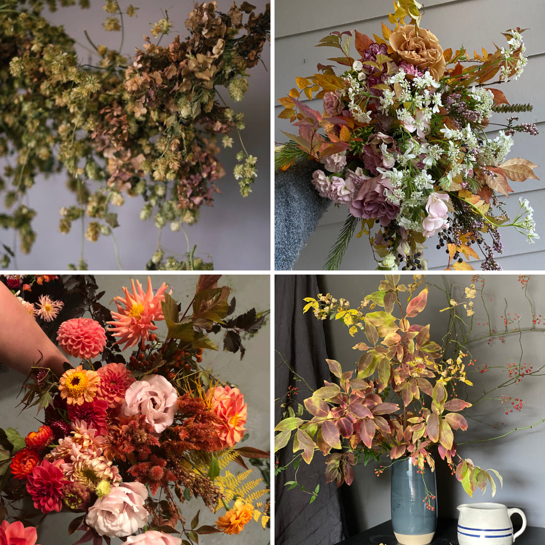As the season transitions into fall, some materials become more fragile so it is a great time of year to source from local growers. By sourcing local materials, you may find a greater range and less impact on your stems due to skipping the shipping. If you do need to utilize shipped stems, consider hardier perennials and grasses as they typically travel well! Another great resource for unique dried material is @velvetcuration, she curates beautiful and interesting textures all year around!